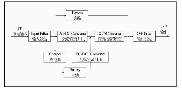 8.输出滤波:完成UPS输出滤波,为负载提供干净的电源。